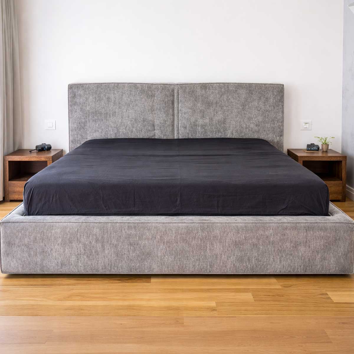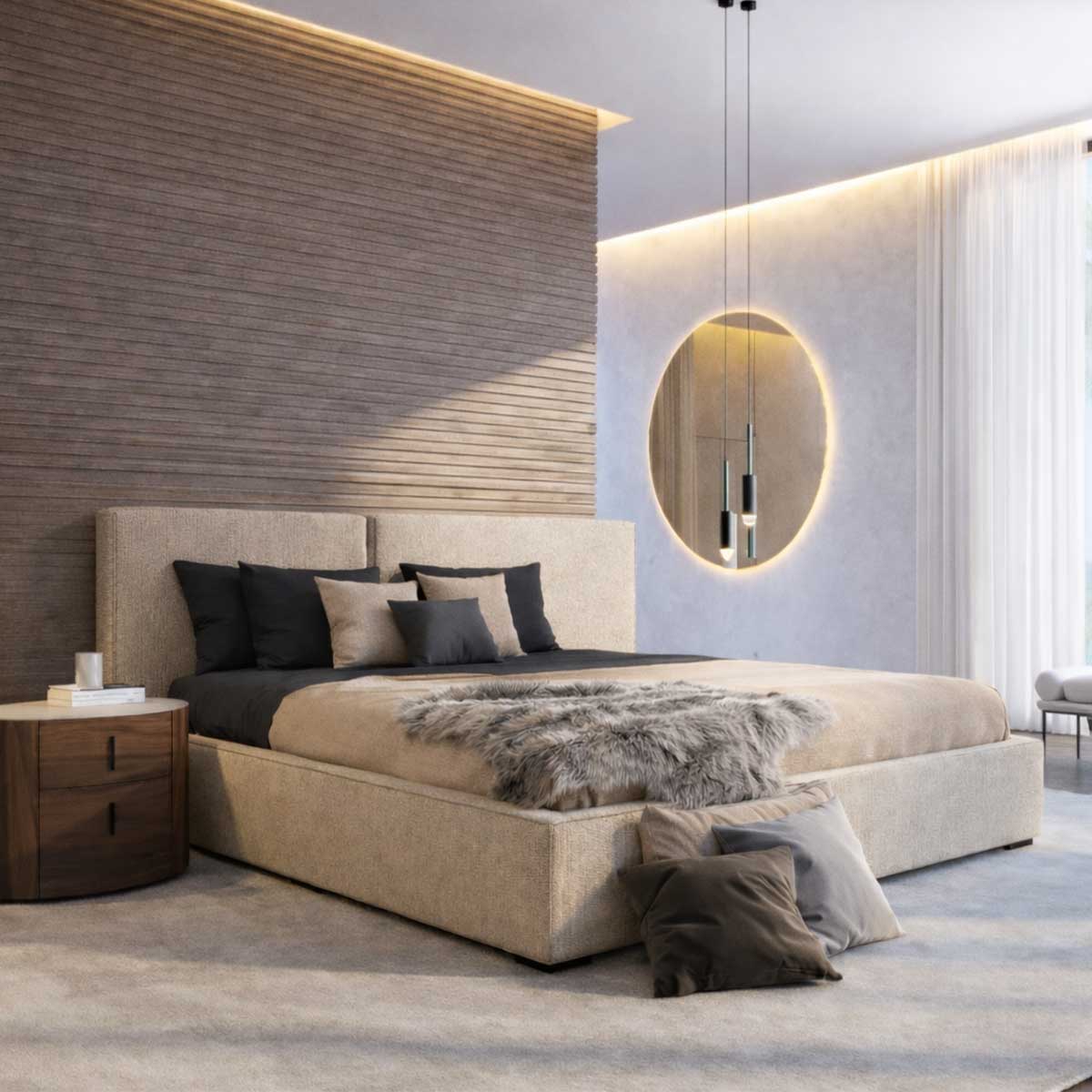 Această abordare minimalistă face ca patul să se integreze armonios atât în dormitoare moderne, cât și în interioare contemporane, urbane sau cu influențe arhitecturale actuale.